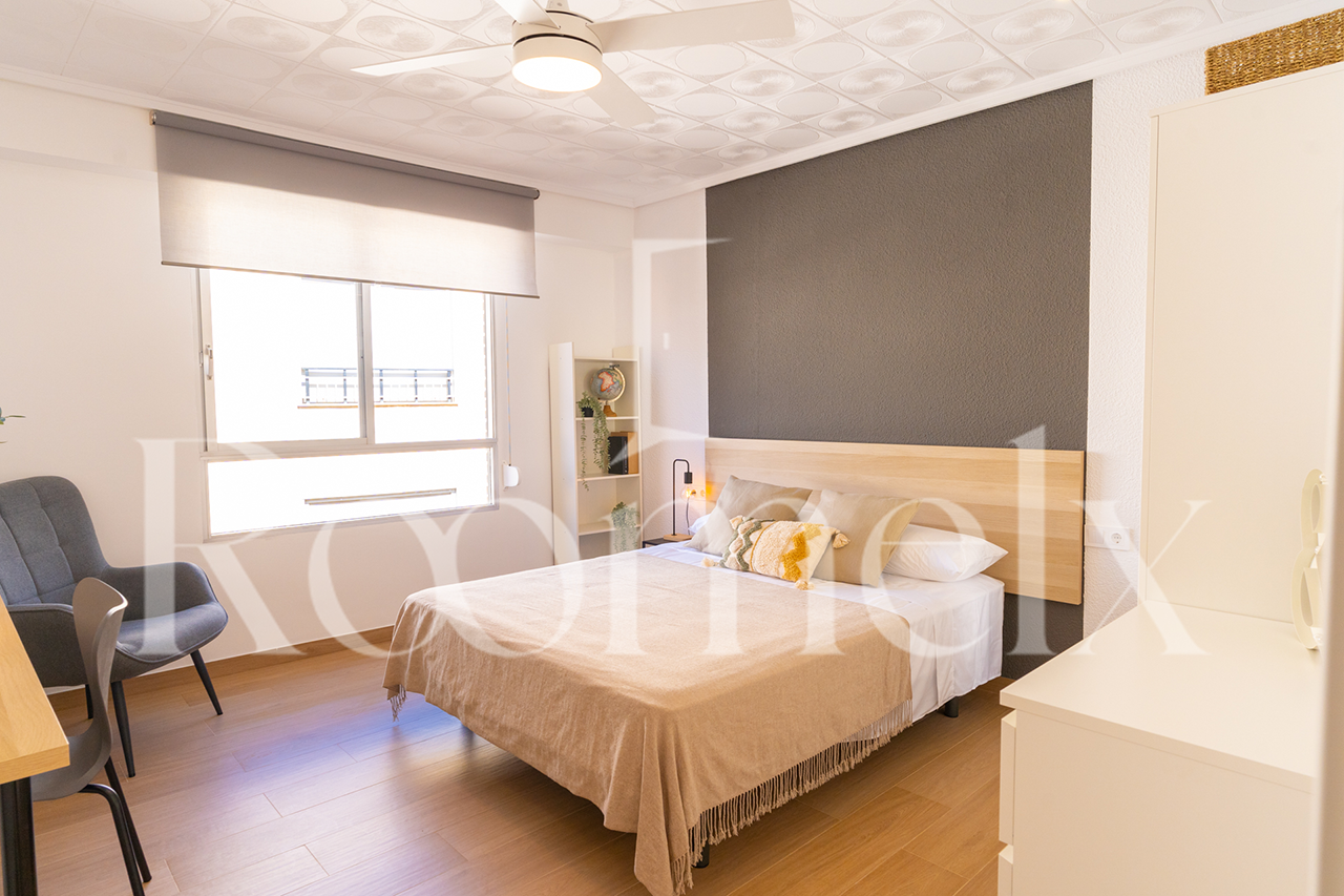 El coste de suministros es fijo: 50€ al mes por habitación. Este importe incluye electricidad, agua, wifi de fibra óptica de alta velocidad, servicio profesional de limpieza semanal en las zonas comunes del apartamento y servicio de mantenimiento.