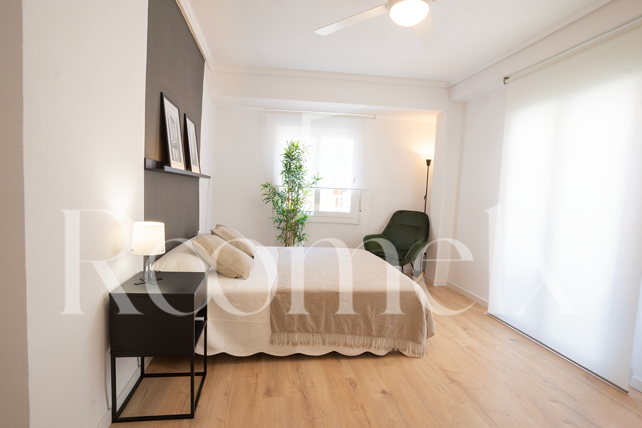 La habitación con la que siempre has soñado: amplia, luminosa, bonita y con un gran balcón donde disfrutar del sol que entra de forma natural en cada rincón de la estancia. Se trata de una habitación muy luminosa, ya que se encuentra haciendo esquina y consta de una gran ventana en una orientación y un gran balcón en la otra orientación. El balcón consta de una mesa y dos sillas para poder disfrutar del buen tiempo en el exterior.