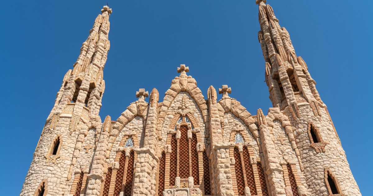 A tan solo 25 minutos de Elche, este santuario modernista se alza sobre un cerro rodeado de paisaje mediterráneo, como si fuera un lugar sacado de un cuento. Es un sitio que impresiona desde lejos y enamora cuando lo ves de cerca.